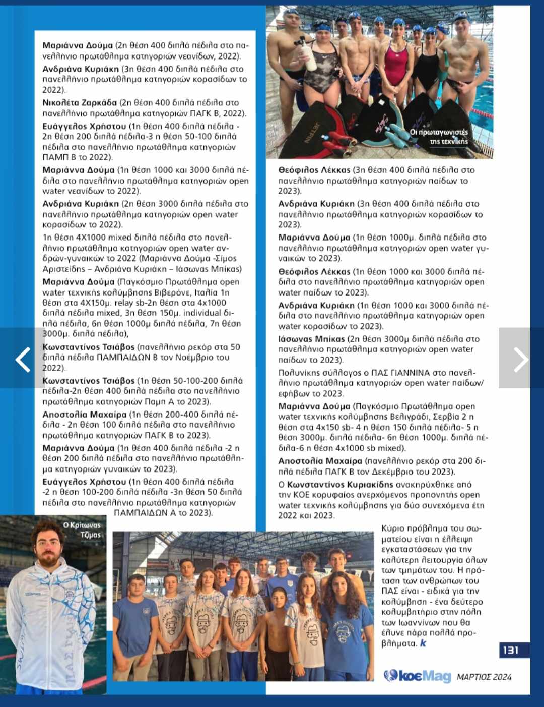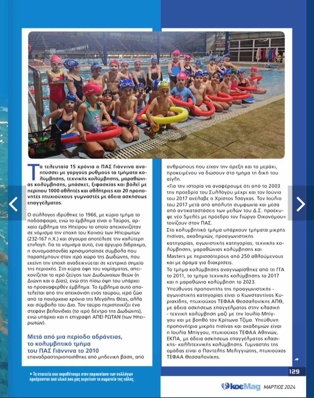 Αφιέρωμα του ΚοεMAG στο Κολυμβητικό τμήμα ΠΑΣ ΓΙΑΝΝΙΝΑ