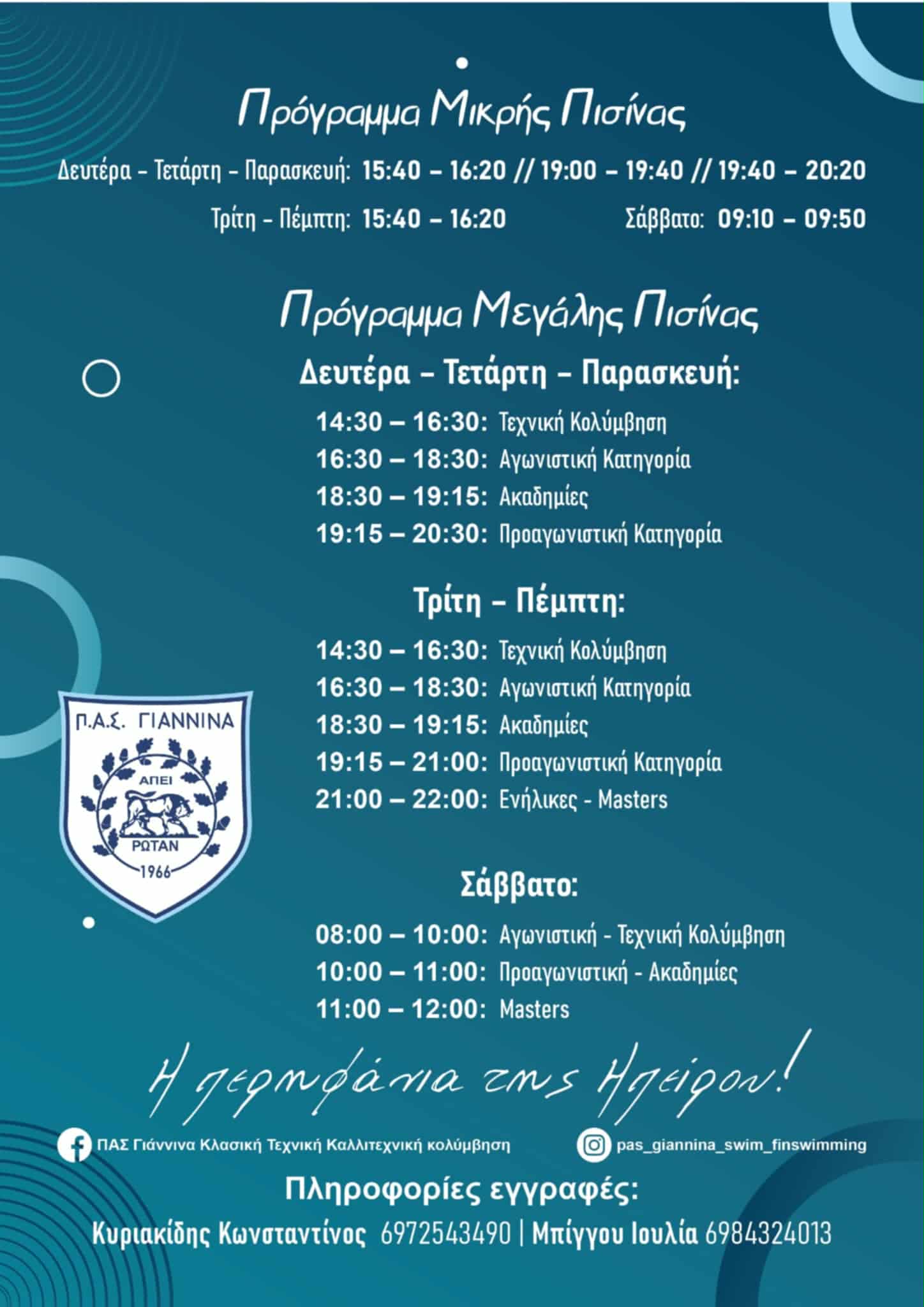 ΠΡΟΓΡΑΜΜΑ 2025-26 Pas Giannina Swimming2025-09-18T11:48:23+03:00 18/09/2025 ΠΑΣ ΓΙΑΝΝΙΝΑ Κολύμβηση Share Facebook Twitter Email